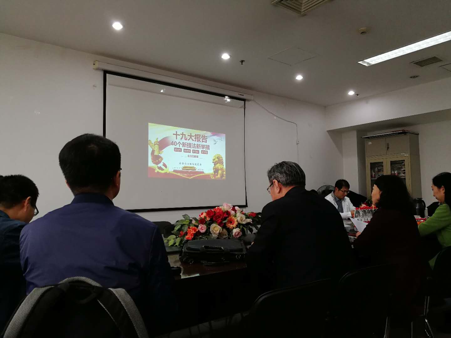 20171025日下午130,时值习近平率新一届政治局常委集体亮相之后,3044永利集团官网在学院南路校区中财大厦1033会议室,集体学习研读《中国共产党第十九次全国代表大会报告》,并认真进行深入讨论交流。会议由学院党委书记杨琼老师主持并主讲,学院近40名教职工参加学习。