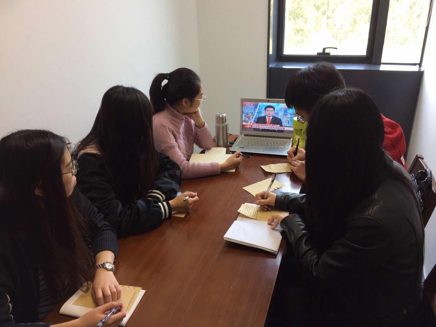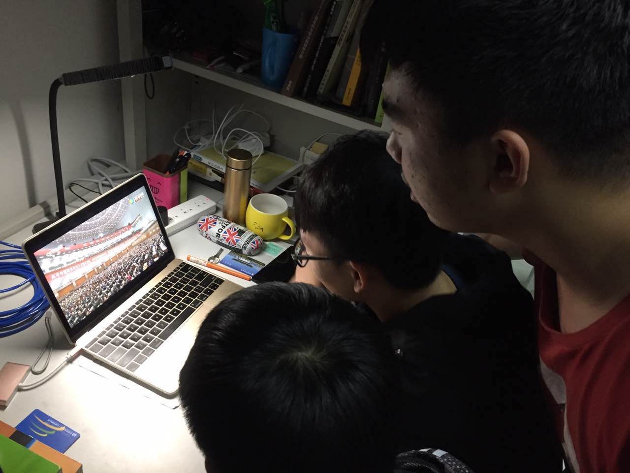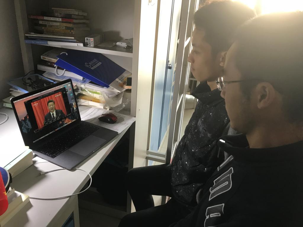 宿舍中,甚至是大活的台阶上,都有同学们关注十九大的身影。同学们虽然尚未步入社会,但已具备了对国家大事的责任意识,自发的关注祖国的规划与发展。同学们三两结对,利用闲暇时间,透过电脑屏幕触摸时代的轨迹。