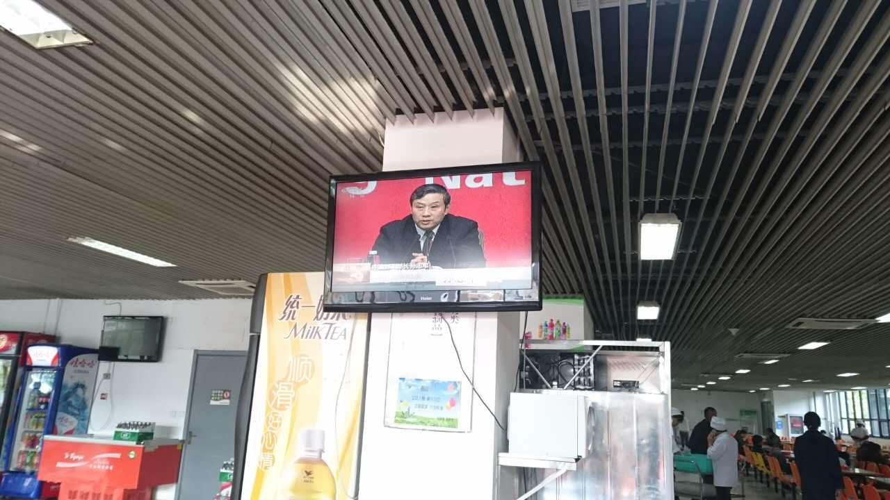 学校的同学们也时刻关注十九大闭幕。食堂里,电视屏幕不断播出着闭幕会现场,就餐的同学们不时抬头注意着大会进程,并小声交谈着大会选举;教室中,同学们在老师的带领下集体观看十九大闭幕会,老师不时地向同学们解释总书记的讲话,让同学们既联系专业知识又更好的了解讲话内容。