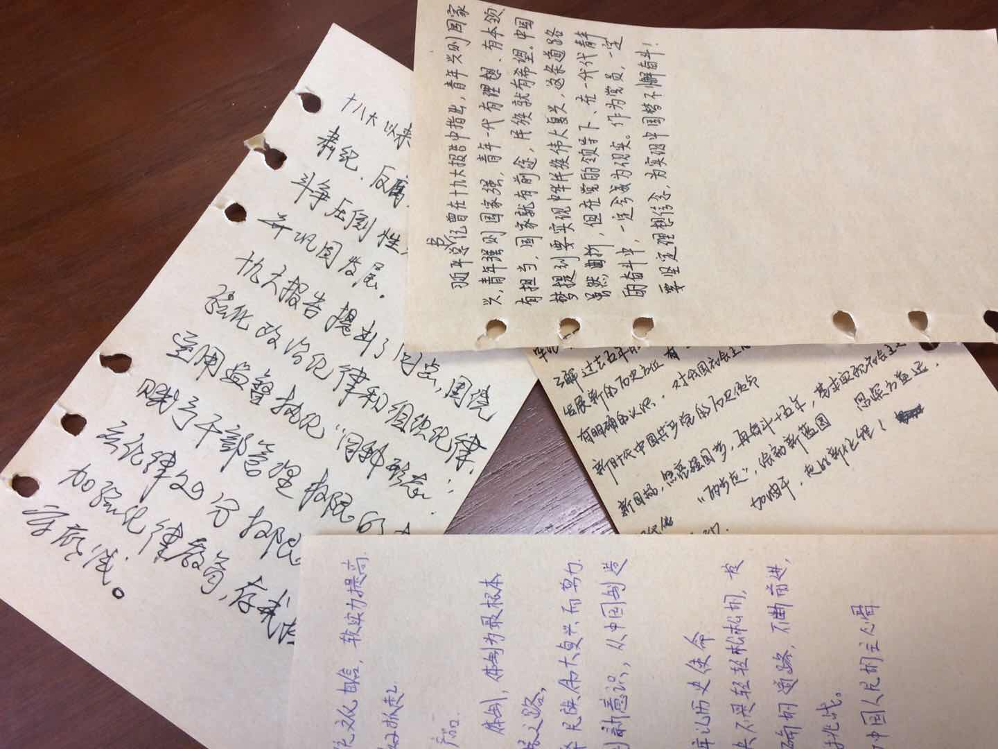 作为新时代的新青年,同学们并没有停留在听报告的层面,而是对闭幕会的选举、总书记讲话内容进行了独立思考,提出了自己的理解,并记录下来,这是校园里的同学们对国事的初步探索,这份爱国热情将支持同学们走得更远。