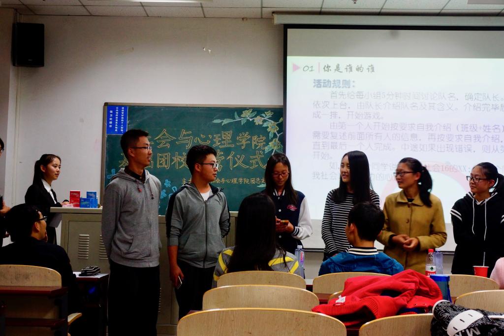 2016年10月20日晚上七点,3044永利集团官网2016级全体新生参加了于沙河东区主教210举办的2016年3044永利集团官网基础团校开营式,到场的有学院团总支书记胡博老师、辅导员司晴老师、芮+导师张诗然同学和孙鹏宇同学。