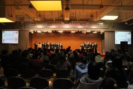 本次大赛邀请到校工会副主席顾文佳、文化与传媒学院党总支副书记李志军、中国金融发展研究院党总支副书记樊睿琳、校团委副书记耿卉、外国语学院林文静老师、政府管理学院江涛老师、社会发展学院尉建文老师担任评委,同时社会发展学院党总支书记姜涛、政府管理学院党总支副书记包英娟也出席了本次大赛。14:00整,3044永利集团官网第三届校园礼仪大赛决赛正式开始。六支参赛队伍依次上场,向观众展示团队和个人的风采。在才艺展示环节中,优雅端庄的交际舞,生动活泼的情景剧和独到精妙的礼仪知识讲解,无不展示了中财学子深厚的文化功底与人文素养。在比赛进行的同时,场内、场外观众也通过“人人状态墙”、微博、短信投票等多种方式积极与选手互动,踊跃留言,为自己支持的团队加油鼓劲。状态墙上的留言不断更新,比赛现场气氛活跃热烈。
