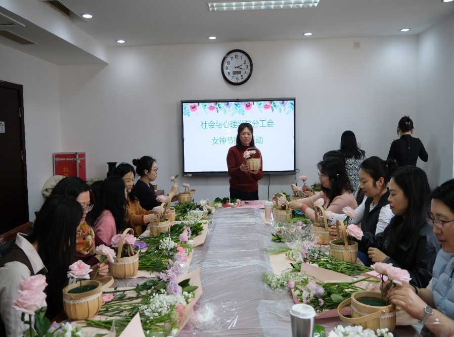一花一世界,一叶一乾坤。为迎接国际劳动妇女节,陶冶情操,感受生活中的美,以花感人,以花育人。社会与心理学院分工会于3月5日下午,组织开展了主题为“美丽生活,妙手插花”的插花活动。