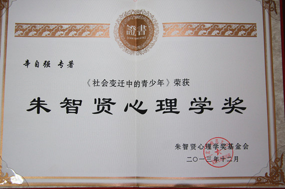 近日,永利集团官网社会发展学院副院长辛自强教授的专著《社会变迁中的青少年》获第五届“朱智贤心理学奖”。