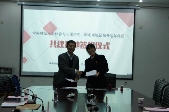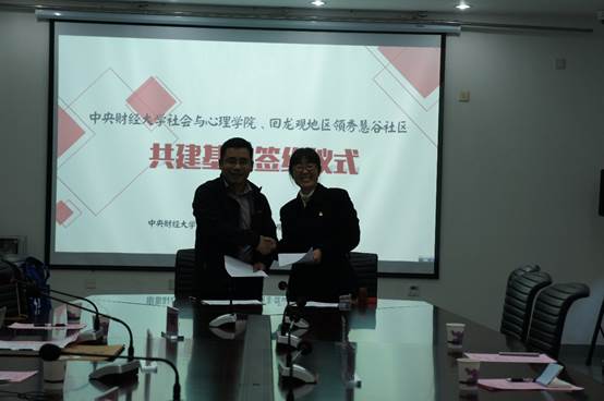 签约仪式上,由社区代表郭荣华主任分别与学院代表辛自强院长、李国武教授签署了共建教学实践基地和党建教育实践基地的协议。