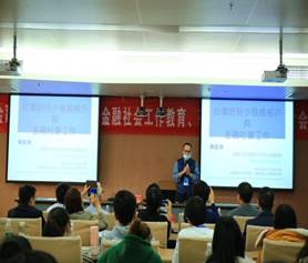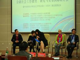 在“本土金融社会工作的发展”主题发言中,中国社会工作联合会常务副秘书长金莉,青岛科技大学法学院王琪,广东财经大学艾战胜,首都经济贸易大学冯浩,廊坊师范学院田阳等学者分别就金融社会工作的教育与发展提出独特的看法。比如金融社会工作与基层社区两会的结合,金融社会工作与互联网、慈善的结合、金融社会工作的特色课程设置与人才培养等提出了独到的见解。