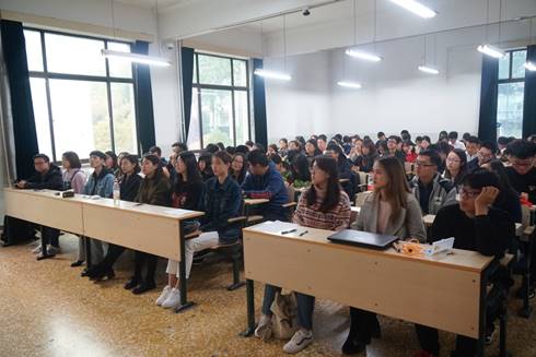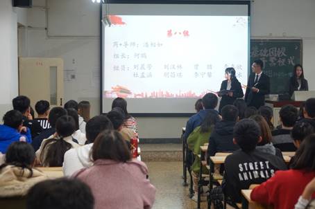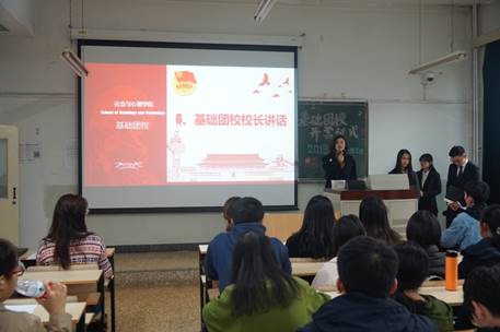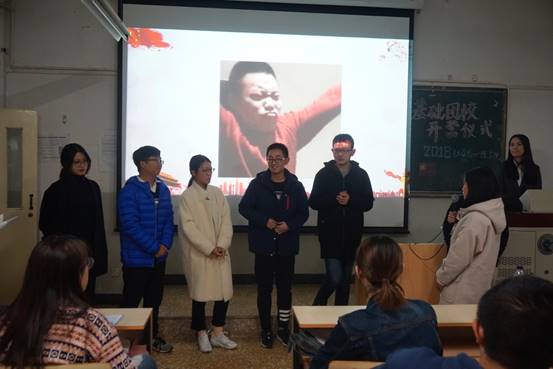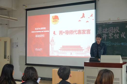 基础团校校长胡博老师也做出了精彩发言。她欣慰地讲到,今年的团校队伍有所扩大,2018级学生会成员、各班班团委以及普通团员均有加入。她希望,在基础团校中,能让志同道合的同学们获得提升自我的机会,融入团队,对职业规划认识更清晰,对团队合作热情更饱满,对业务知识更熟识与得心应手。基础团校不是一个枯燥乏味的组织,而是一个有趣并有益的平台。