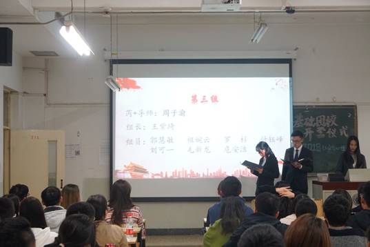 首先,由主持人上场宣布仪式开始,并介绍了到场领导及老师。她们是团委书记胡博老师、团委副书记和17级辅导员陈璇老师、党务干事和16级及18级辅导员冯丹老师。此外,还有3044永利集团官网学生会主席崔雨芳学姐、副主席彭旭含学姐、第一团副刘桂槟学长、第二团副刘筱萌学姐,以及社会18-1班芮+导师周子渝学姐、班助童锐学姐及张琦娉学姐。