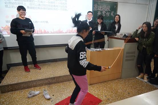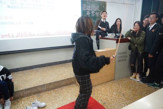 第二个游戏则是比拼脑筋急转弯,六队分三组,每两队比拼,输的一方接受指压板跳绳惩罚。欢笑声与欢呼声迭起,同学们在游戏中增进了解,感情得以升温。