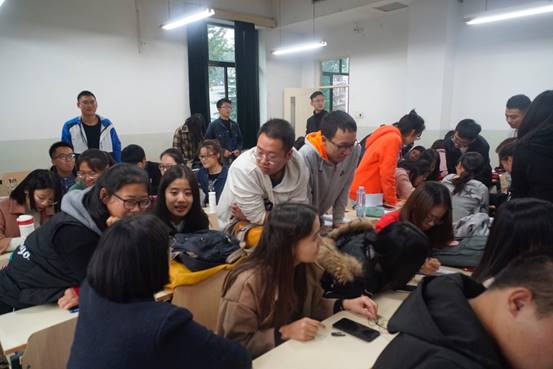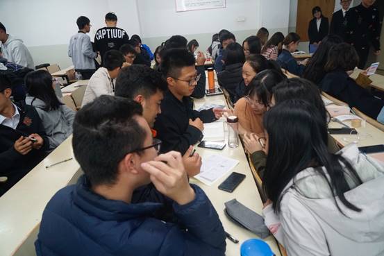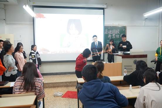 然后,同学们通过大屏幕了解到了学员分组与导师分配情况。按照分组,同学们进行了两项破冰小游戏,第一个游戏要求同学们在规定时间内记住本组成员的名字、籍贯与特点关键词,若在规定时间内答不出来,则要接受吃柠檬或者模仿表情包的惩罚。