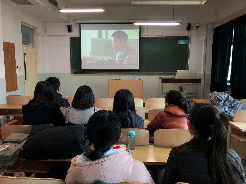 观影活动播放了《人民的名义》中陈岩石为汉东省委常委上党课的节选片段,陈岩石在党课中用自己战争年代的经历诠释了一名共产党员的理想与信仰,观影的党员同学和积极分子同学被陈岩石的党课讲解所感动,被“战争年代能背炸药包是共产党员的殊荣”深深打动。