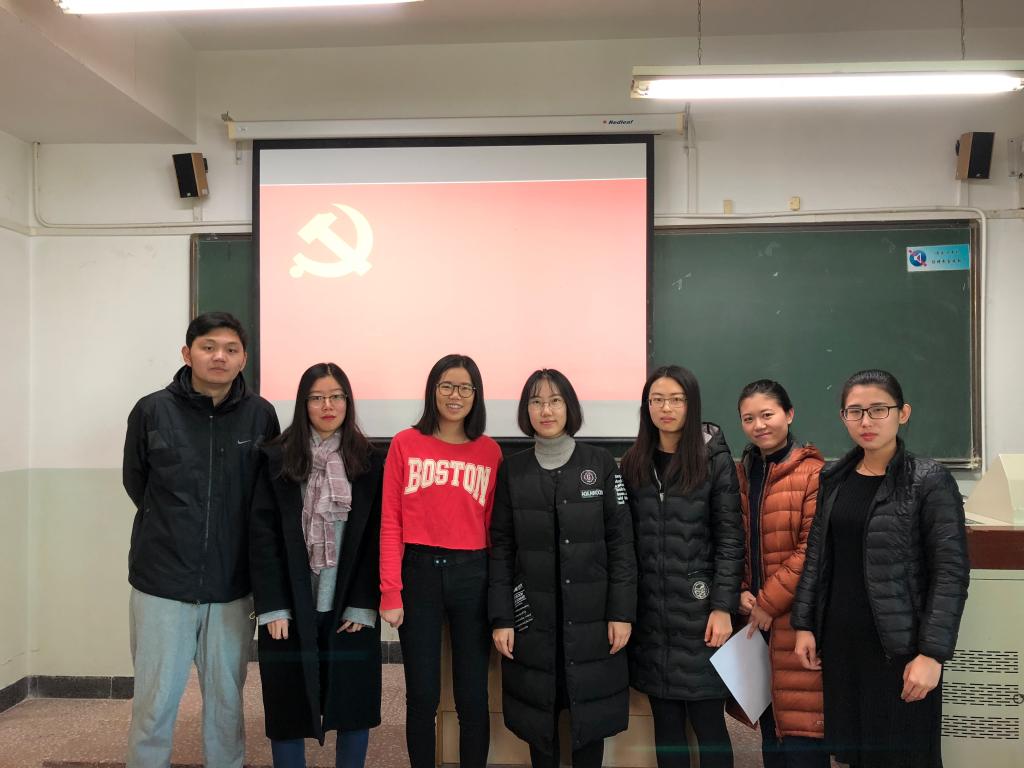 最后,王焱进一步强调,要求全支部党员深化对十九大中“必须严明党的纪律,把纪律挺在前面,用铁的纪律从严治党”的认识,在学习生活中加强党性修养,牢记党的宗旨,坚决抵制不良风气,严格遵守工作纪律,塑造良好的党员形象;要求党员同学和积极分子同学带头加强课堂内外的学习,做学风建设的模范;带头拓展个人兴趣爱好,做素质提升的模范;带头组织参加团学工作,做全面成才的模范。