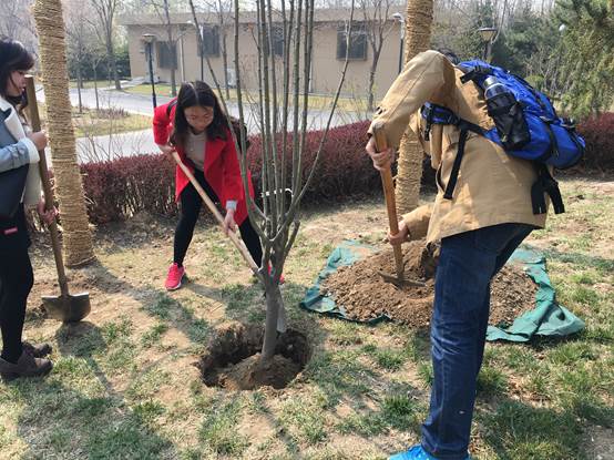 2017年3月29日,3044永利集团官网党委在丁香园2号楼北侧成功开展了“点亮绿色守护希望”党员奉献日主题志愿实践活动,为沙河校区捐赠9棵西府海棠树苗并亲手栽种。2013级本科生党支部书记胡博老师、2014级本科生党支部书记司晴老师以及学院各党支部党员代表及积极分子参加了本次植树活动。本次主题志愿实践活动的目的在于培养党员和积极分子的奉献意识,为沙河校区的环境美化做出贡献,同时也提高党支部成员热爱自然、珍爱生命的生态意识,学习体验绿色发展理念,增强党支部的活力和凝聚力。
