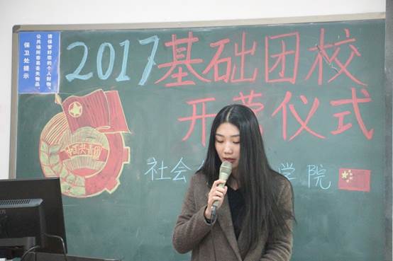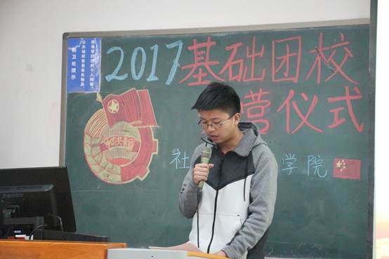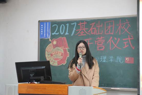 大会第一项,出团旗,奏团歌。接着,主持人带领同学们回顾了去年团校活动。在2016年团校活动中,团组织为大家准备了精彩的开营仪式、知识竞赛、定向越野活动、国际贸易讲座、实证调查研究讲座和工匠精神讲座等活动,以及最后的闭营仪式。