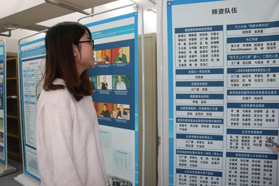 沿着校史馆的边界,顺次摆放着记录中财自建校以来历程的竖幅大图片。为我们解说的是一位亲切的学姐,她先带领我们了解了学校的名称、专业以及行政等方面的变迁。