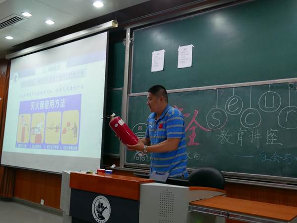 第三部分是消防安全,宋老师详细介绍了发生在上海商学院的一起火灾案件,明确指出:火灾离我们并不远,任何一个违规操作都可能给自己带来危险。为了帮助同学们掌握应对火灾的技能,宋老师分别介绍了报警途径,电话,并现场演示了灭火器的使用方法。提醒同学们报警电话为:61776117 61776118。