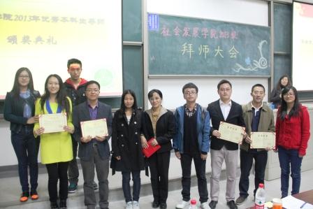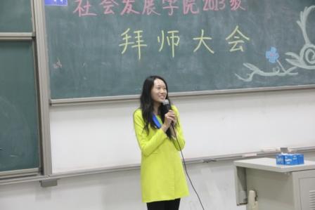 接下来是最激动人心的拜师大会,每年导师们都会带几个新一批的学生,帮他们答疑解惑走出迷茫。13级新生难掩心中的喜悦同自己的导师握手拥抱,定格最灿烂的笑脸。在导师制这一优良传统下,学院形成了师生互动的良好氛围,营造了“社发为家”的特色文化。