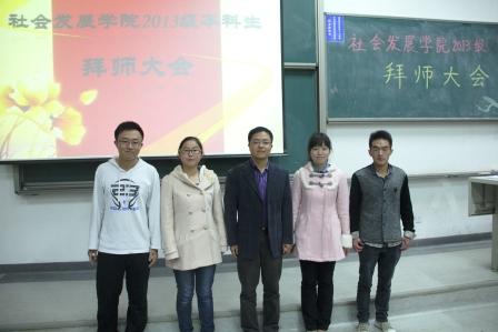 10月18日,社会发展学院在沙河校区主教215隆重举行了2013级本科新生拜师大会。大会由社会发展党总支书记姜涛老师主持,院长张杰老师,副院长辛自强老师、高霖宇老师、丁志宏老师,以及社会学系、心理学系的老师出席了本次大会。