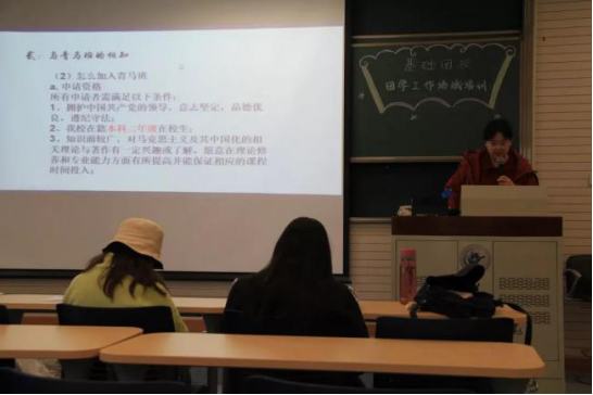 首先邹嘉影学姐介绍了她在青马班的亲身经历,从了解青马班,到着手准备笔试面试,等流程将学员代入到了她的角色中去,让同学们了解到了青马班的方方面面。而后,学姐还提出了几个小问题加深了同学们的印象。