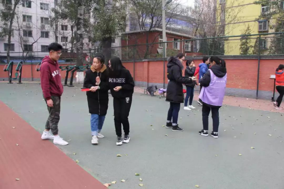 本次活动共在校园内设置了五个任务点,分别由五组身着紫色社心志愿者服装的工作人员组织,每一个任务点的游戏都需要全组成员共同参与,齐心协力完成。每组同学在他们完成的最后一个任务点都会得到10张中财内景物的照片,他们需要以同样的角度复原其中的8张并带回主教楼,认定通过即可视为完成全部任务。第一名完成的小组可以获得奖品。了解游戏规则后,各组的同学都已经迫不及待,跃跃欲试。在下午2:00,我们正式开始了这次的定向越野活动。