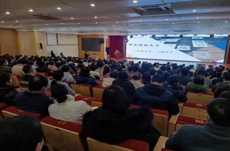 图2 招生组在正一中学报告厅面对高三家长宣讲