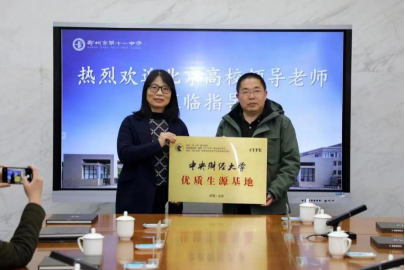 2月24日,招生宣传组来到郑州市第十一中学。在校党委书记杨志娟等领导陪同下,参观了体育馆、图书馆等场地,并了解第十一中学的历史沿革和优秀校友。随后和杨志娟、副校长弋松伟等主要校领导座谈,并进行优质生源基地授牌活动。
