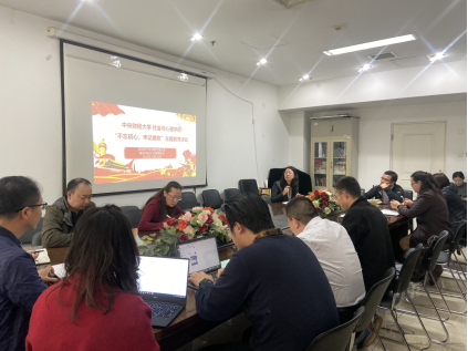 2019年10月16日下午,按照学校“不忘初心、牢记使命”主题教育要求以及学院主题教育工作安排,学院党委在中财大厦1033会议室召开“不忘初心、牢记使命”主题教育专题调研会暨学院领导班子和班子成员征求意见座谈会。会议由学院党委书记陈钰主持,学院领导班子成员、党委委员、纪委委员、教工党支部书记及委员、系主任和教师代表等参加会议。