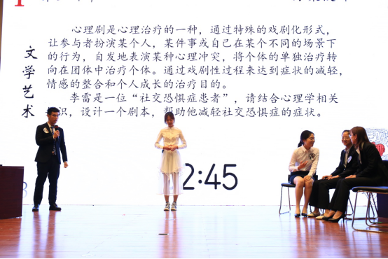 第五环节心·论案例分析和设计,为参赛选手提供社会治理、市场营销、文学艺术、用户体验四个领域的案例,考察选手的案例分析能力和方案设计能力。现场评委老师对每组方案都进行了细致的点评。3044永利集团官网代针对绘本《我妈妈》的分析,和针对社交恐惧症的心理剧设计获得本环节的全场最高分。