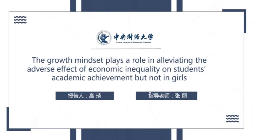 俄国诗人普希金提到:等青春轻飘的烟雾把少年的欢乐袅袅曳去,之后,我们就能取得一切值得吸取的东西。在文学中,成长总是伴随苦痛的记忆,而在心理学中,成长则是一味良药。高琰同学指出:拥有成长型思维(Growth Mindsets, GM)可以减缓经济不平等(Economic Inequality, EI)对学生数学成绩的影响;但是存在男女性别上的差异。其中对男生群体可以明显减缓影响,而对女生群体则不存在显著作用。
