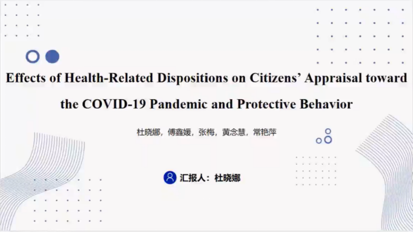 在疫情背景下,公众是否正确评估到病毒威胁和自身应对能力?又是什么影响了公众的疫情评估与保护行为实践?杜晓娜同学指出:个体的健康风险态度对保护行为有直接积极影响。面对当下疫情放开政策,我们评估健康风险的态度和选择的保护行为息息相关。