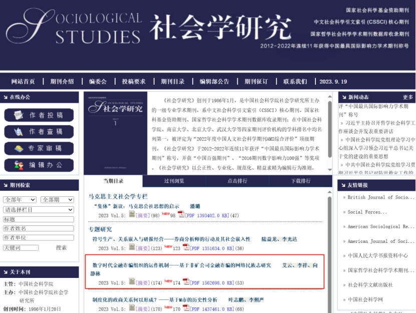 近期,永利集团官网艾云副教授,与上海大学2022级博士研究生(永利集团官网社会学系2022级硕士毕业生)李祥、中国社会科学院社会学研究所向静林副研究员合作撰写的论文《数字时代金融诈骗组织的运作机制——基于非矿公司金融诈骗的网络民族志研究》发表于《社会学研究》2023年第5期。